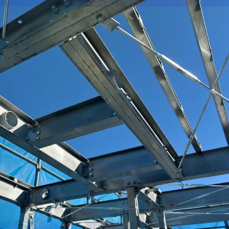 施工対応・現場管理軽量鉄骨フレームに精通した技術者が、施工から現場管理まで一貫して対応。カスタム部材の製作や、壁・屋根工事を含めた工程をまとめて管理し、品質と施工性を確保します。