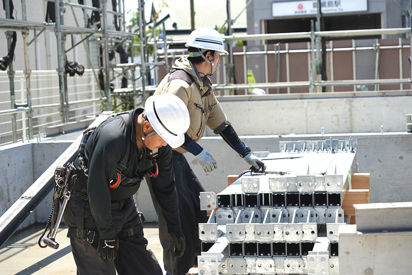 現場では主にボルト接合による施工となるため、木造を中心に施工されてきた工務店様でも対応しやすい工法です。必要に応じて技術サポートも行っています。