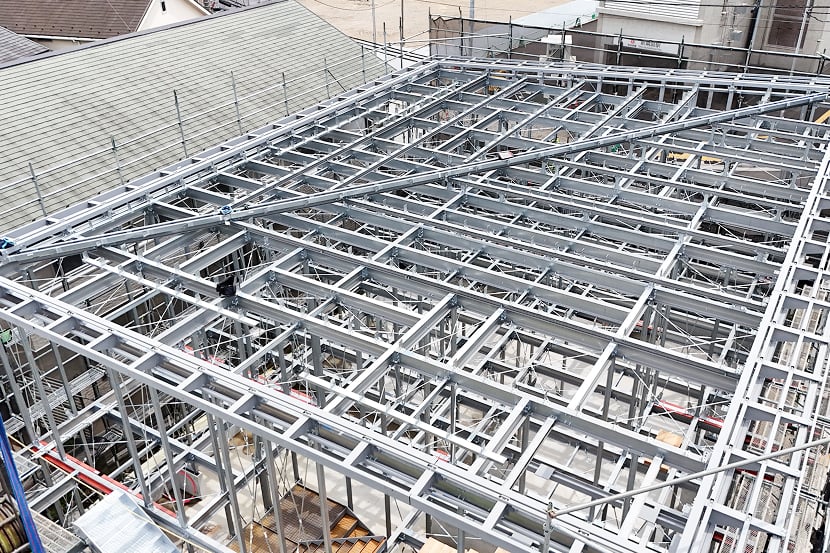 私たちが提供する軽量鉄骨フレーム「JFE フレームキット®」は、従来の木造住宅の柱や梁、筋交い、土台を鉄骨に置き換えた軽量鉄骨構造部材です。鉄骨部材には20年保証※1が設定可能で、高い耐震性や耐久性も実現※2。長く安心して暮らせる耐久性の高い建物を実現します。
